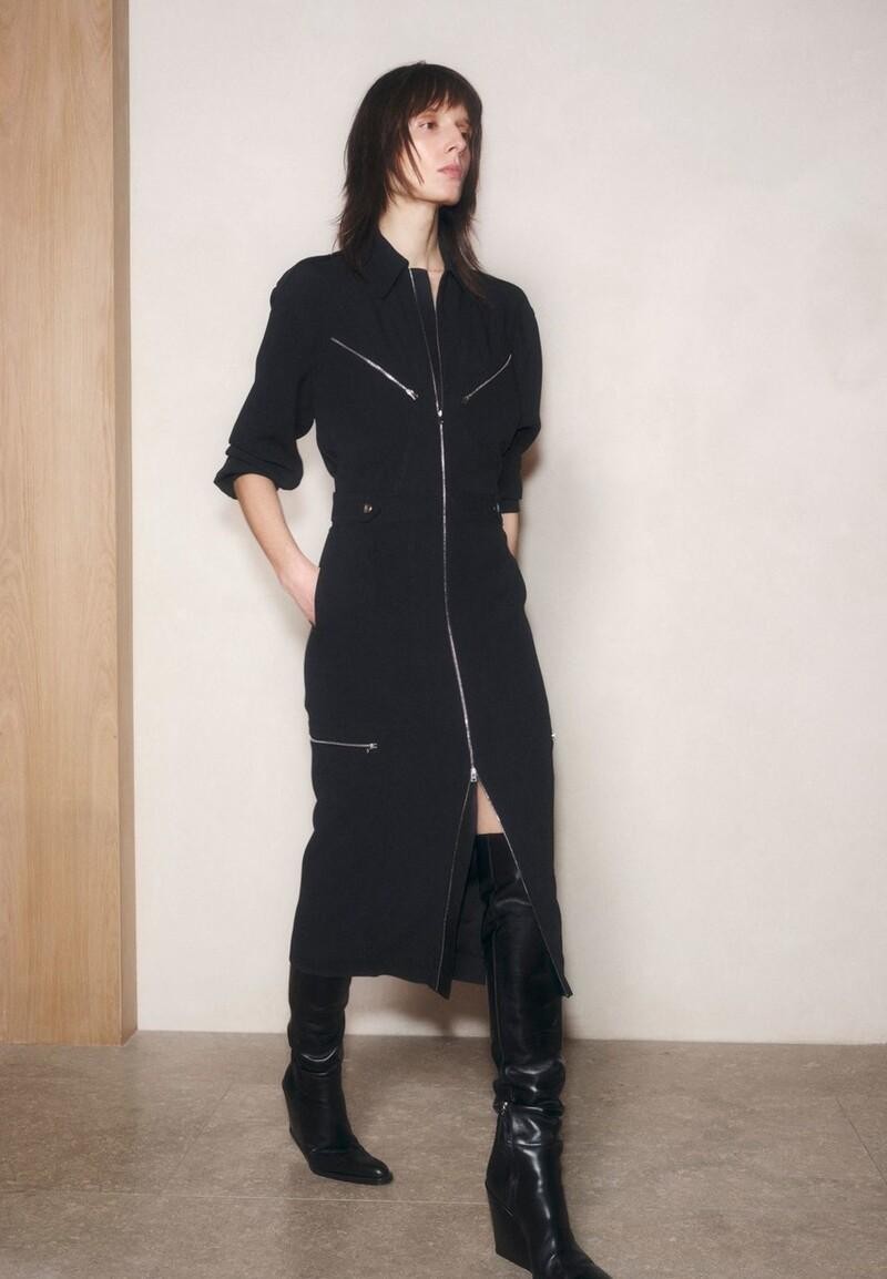 黑色的衬衫连衣裙可以选择拉链式的款式,这种款式看上去会更加帅气一些,因为拉链是金属质地,能够让女性的形象更加凌厉,比较中性,所以帅气率性感会更加强烈。