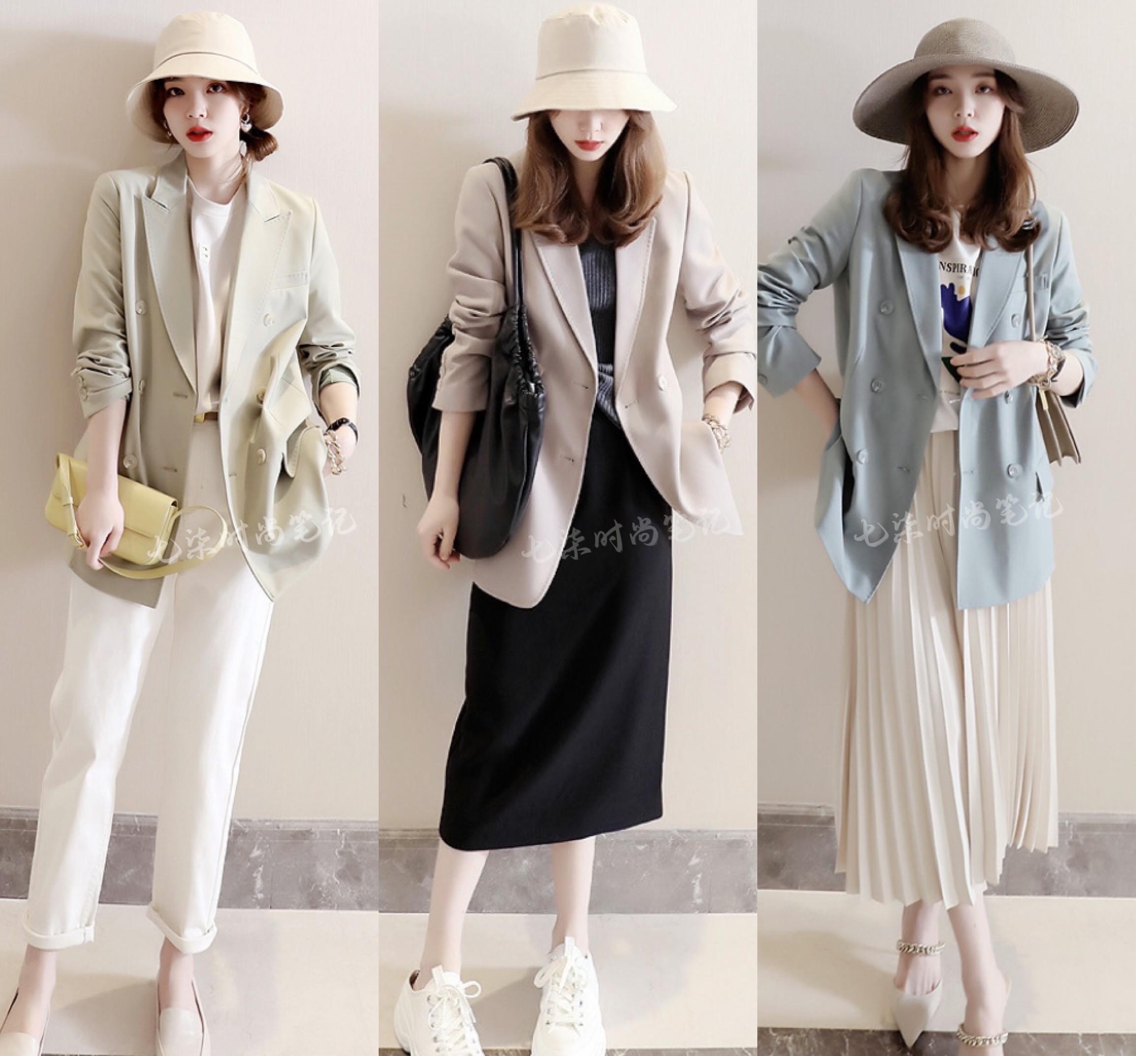 春夏要应对早中晚忽冷忽热的温差变化,自带气场的西装会是很多人的选择,推荐30岁的女人一定要试试西装+半裙的穿法,相比裤装搭配裙装更温柔有亲和力,而且不容易穿得老气,又非常显气质,而且挺括的西装外套还可以修饰我们不完美的身材。