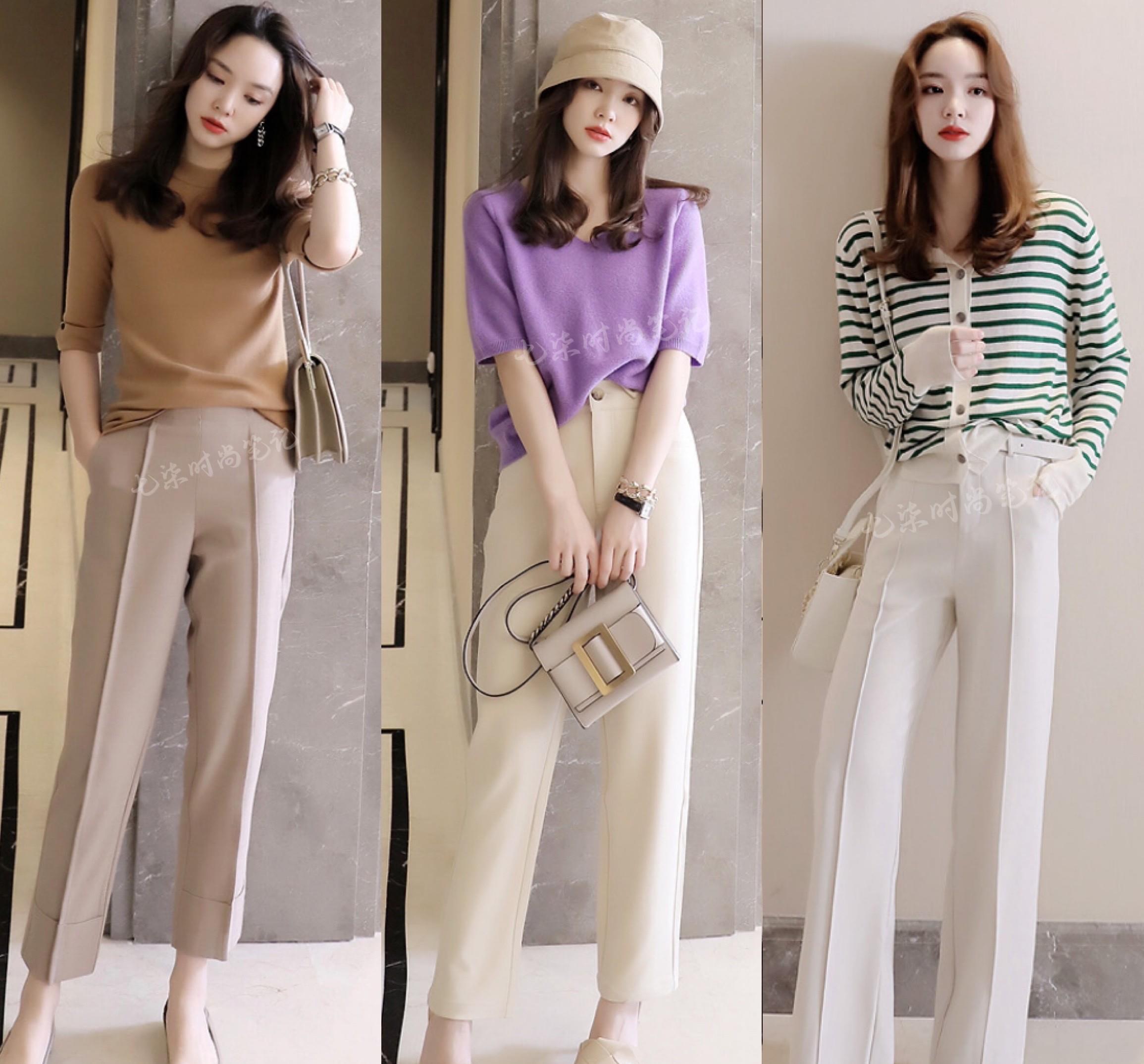上班族还可以用针织衫搭配西装裤,温柔有气场。值得注意的是修身款的针织衫成熟度更高,搭配西装裤这类偏正式的单品时,建议浅+浅的配色,知性稳重不容易穿得老气。