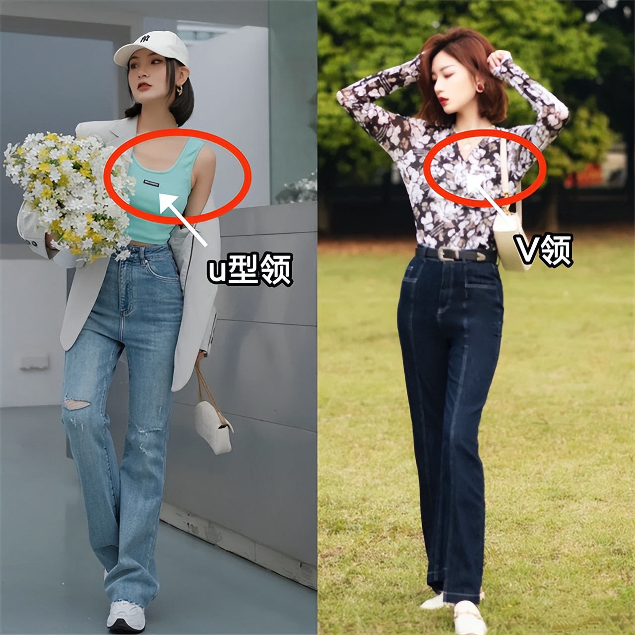 要是你脸宽脸圆脖子粗,那就选择纵宽>横宽的大领口上衣;若是脸部瘦长,脖子纤细或者有明显的窄肩溜肩问题,那就选择挂脖或井字形上衣,以及横宽>纵宽的上衣。