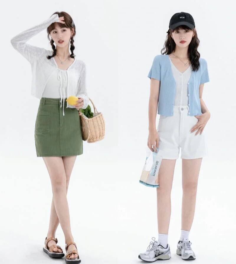 如果选择搭配宽松T恤衫,那么你将会收获满满的少年感。但是这种搭配不适合胸大的女生,穿宽松T恤衫容易显得臃肿。相比而言,还是修身上衣更加不挑身材。
