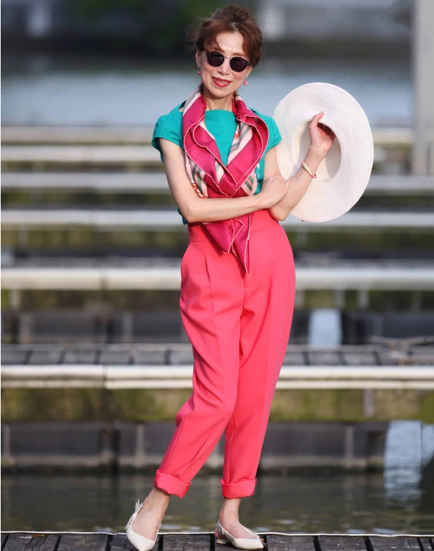 配色艳丽花哨的裤子,意味着饱和度高、繁复冗杂,在视觉上容易出现刺激感和浮夸感,无法将成熟女人温柔得体的气质展现出来,只会给人不伦不类、装嫩做作的既视感。对时尚把控力不强、色彩感知力偏弱的40岁女人,建议不穿配色艳丽花哨的裤子哦!