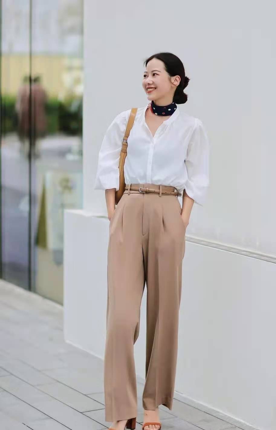 由于白衬衫、西装裤都是职场穿搭中的常客,所以,“白衬衫+西装裤”造型的正式感,非常强烈,不费力就能营造出浓郁地职场氛围感。值得注意的是,把“白衬衫+西装裤”穿出职场干劲并不难,难的是如何在打造职场风的基础上展现出更多时尚气息?