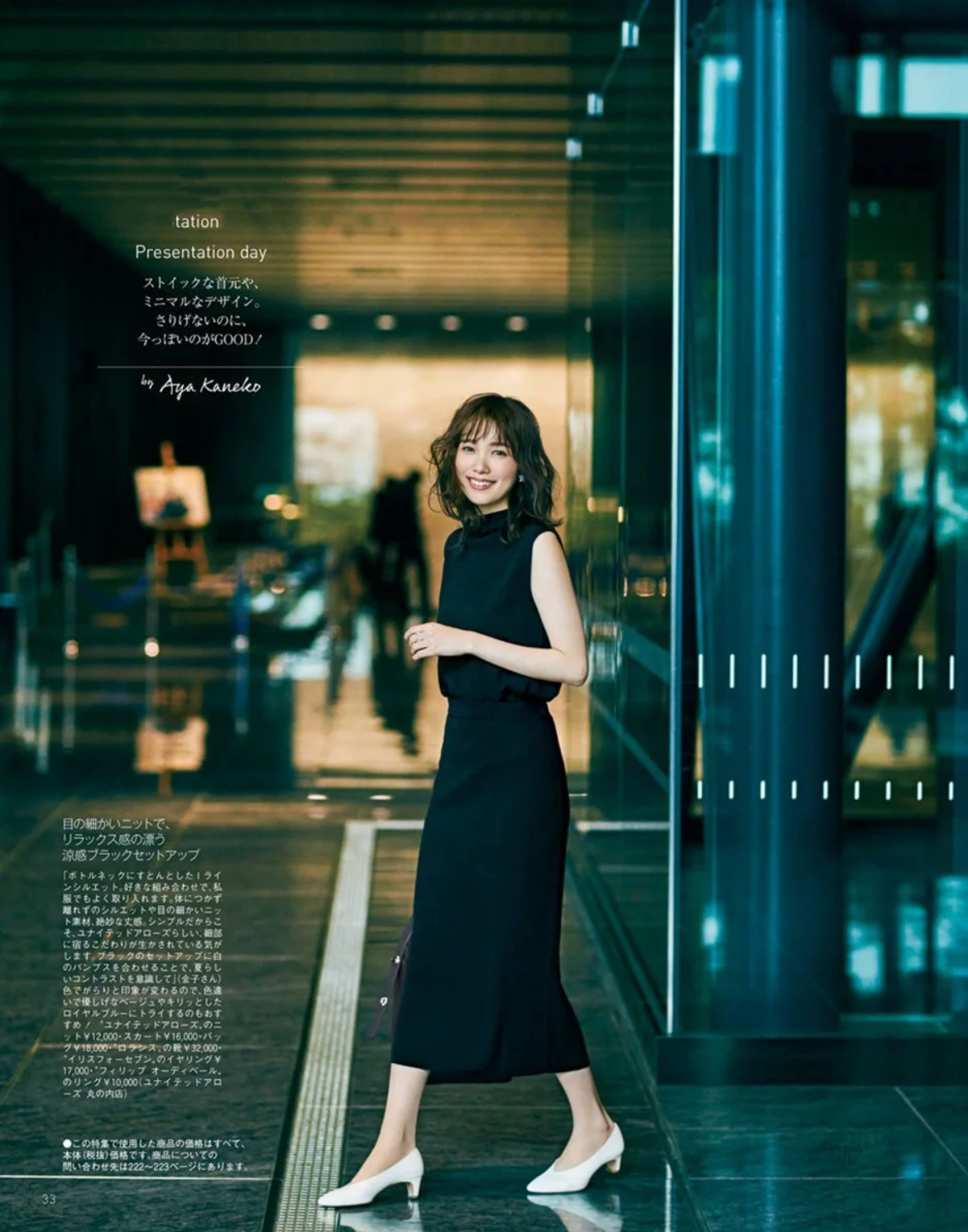 7:3的配色比例是将黑白双色穿出高级感的最终底牌。一件黑色灯笼袖上衣+白色西装裤,将端庄古典的成熟女人味与干练利落的都市情调拿捏得恰到好处,为了让配色有所侧重,顺势加入纯黑色的平底鞋和包包作为呼应,掀起一片清冷沉静的高级视觉感受。