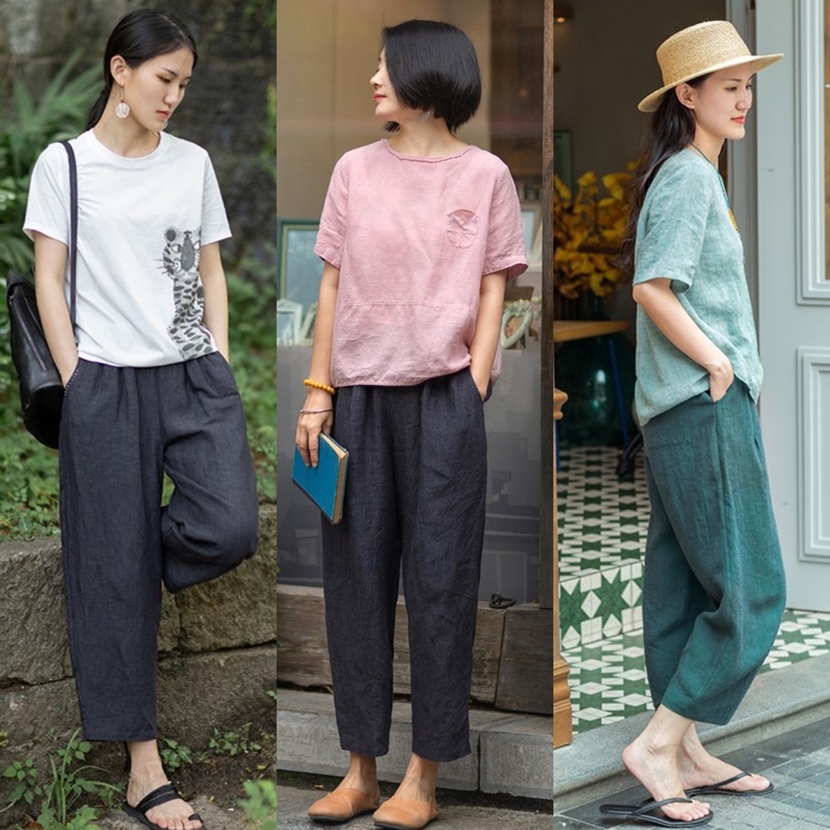 白皮的姐妹推荐选择雾霾蓝的裤子,饱和度没有那么高的蓝色显白又高级,可以很好地打造出清爽高级的视觉感受。黄黑皮更推荐尝试下图中姜黄色的裤子,可以很好的提亮肤色,配色更加俏皮可爱,随便搭配一件T恤或衬衫都非常时髦好看。