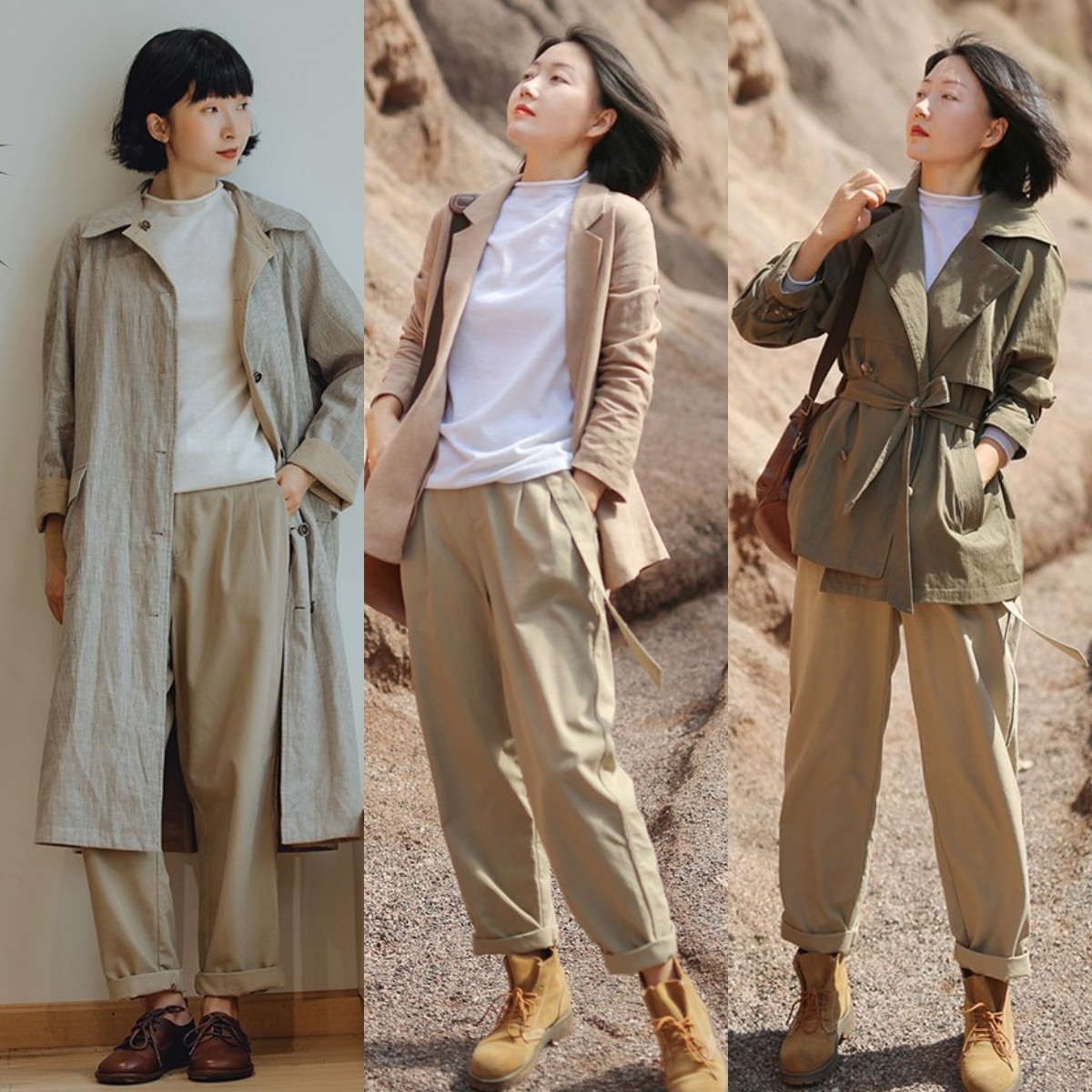 卡其色的裤子也是非常经典百搭的款式之一,低调又内敛的配色休闲中又带有一丝干练气质,时髦又百搭。